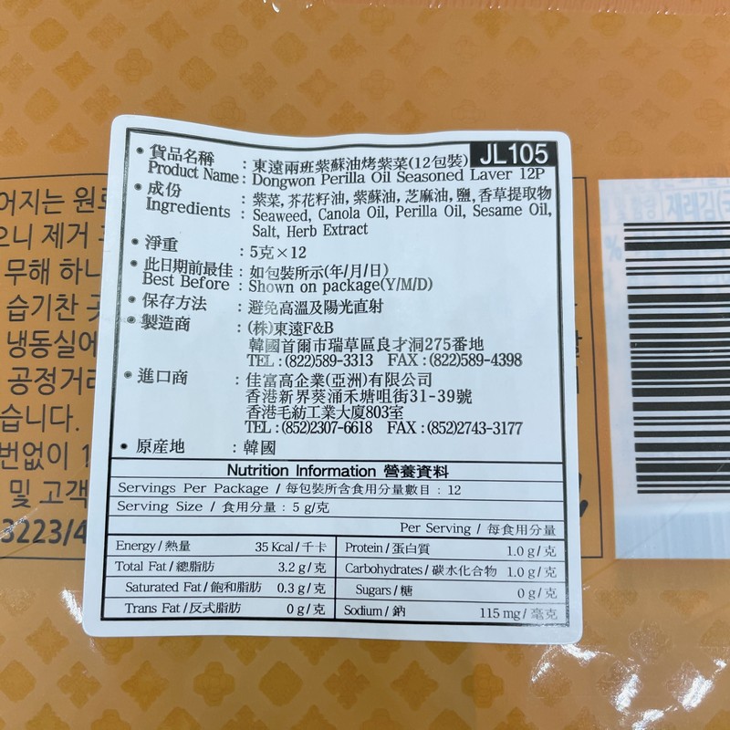 東遠兩班紫蘇油烤紫菜 12 X 5GM